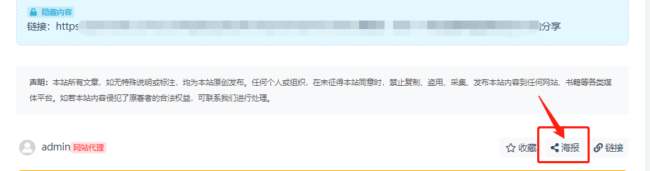3.3登录网站,点击资源文章下面的海报自动生成带你的推广链接的二维码,用户注册后消费后,你可获得对应会员等级的佣金
