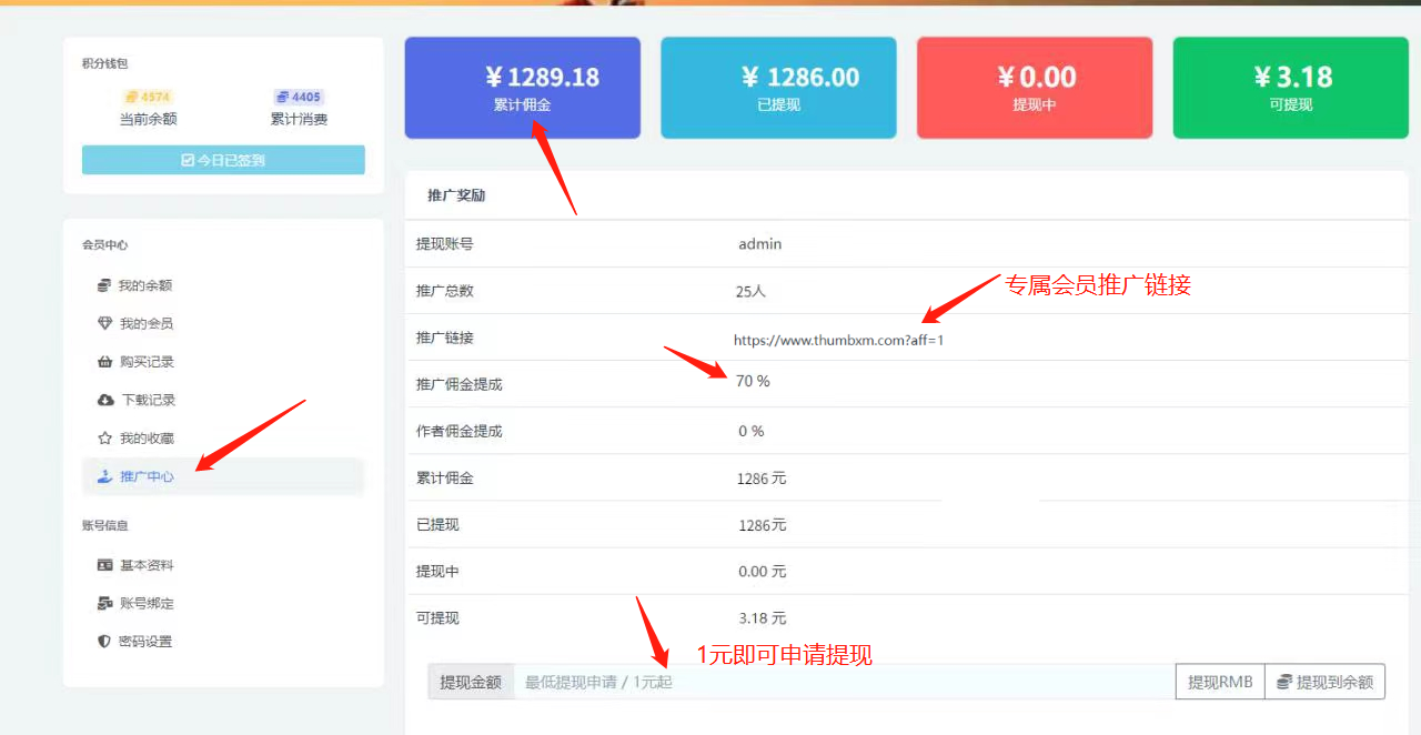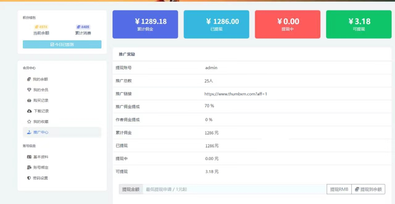 3.2进入你的会员中心→推广中心,复制你的专属推广码,发布出去,只要是通过你的推广链接注册的用户消费后,你可获得对应会员等级的佣金