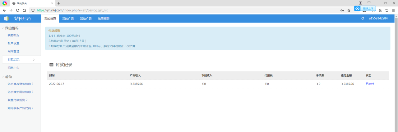 广告联盟平台月结,当月收益次月结算