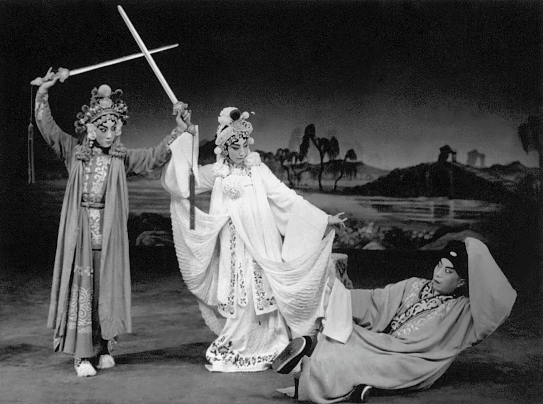 在京剧《白蛇传》中,杜近芳(中)饰白素贞,叶盛兰(右)饰许仙,吴素英(左)饰小青