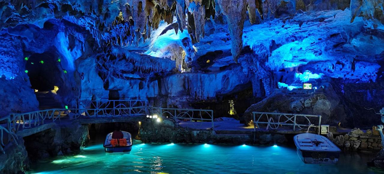 灵栖洞作为《西游记》东海龙宫的取景地,对外开放的有三个石灰岩溶洞,灵泉洞,清风洞,霭云洞。灵泉洞可以乘坐小船进去,清风洞和霭云洞则需要步行。霭云洞景色观感最好,但需要步行