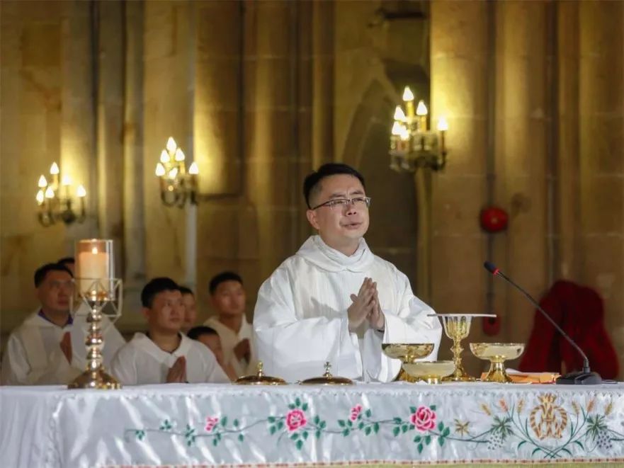 主祭:今天你们怀着虔敬的心,参与这庆典,愿你们满载灵性的喜乐,及天上的恩宠。