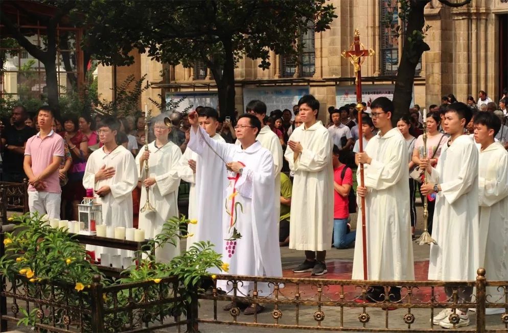 弥撒结束后,甘主教在圣母山前祝福了众教友。