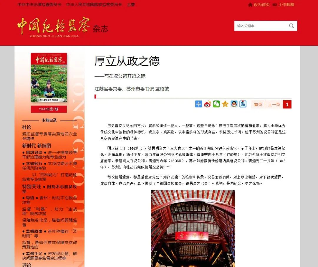 为充分发掘苏州市历史文化资源,用好用活独有的政德教育资源,去年3月,苏州市纪委监委启动况公祠综合布展升级改造项目,打造干部政德教育基地。