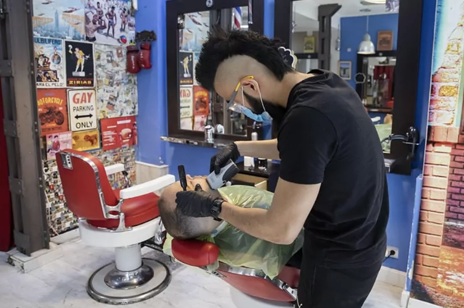 上午10:00,Bearbero de Embajadores男士发廊开业,店里已经有了超过一个星期的预约名单。与上一个理发店不同,在这里则流淌着摇滚元素。来自塞维利亚的41岁男子Juan Manuel Sánchez说:“我们一直在网上为想要进行打理造型的人提供建议。”