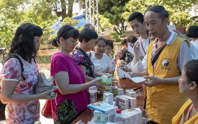除此以外,吕祖诞当天纯阳观还举办多场的公益慈善活动。上午九点,纯阳观联合南方医科大学珠江医院举行公益义诊,来自多个科室的专家们现场坐诊咨询,为信众测血糖血压,派发保健药品,并为公众传授心肺复苏等急救技能。与此同时,纯阳观联合凤阳街道举行慈善活动,向周边来穗人员捐赠粮油等生活物资用品。中午,纯阳观还为到来现场参与活动的善信免费派发混元斋饭。广州道教上善义工社为当天活动全程提供了秩序卫生、物资运输等后勤保障服务。