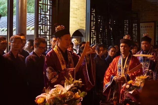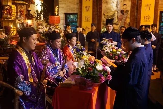 18:00点整,皈依法会正式开始,由居士代表恭敬迎请三师——广州道教协会会长潘崇贤道长、广州都城隍庙住持车高飞道长和三元宫杨崇基道长登座说法,说三皈五戒,带领居士发愿。居士们信受奉行广州纯阳观,皈依三宝,常侍天尊,永脱轮回;生生世世,得闻正法;学最上乘,不落邪见。