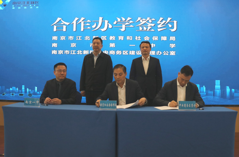 4月22日上午,南京江北新区——南京市第一中学合作办学签约仪式举行,双方将在中央商务区全面实施合作办学,新办六所公办初中小学。新区党工委委员、管委会副主任王伟,南京市教育局副局长周鹏南京市江北新区教育信息网,南京市第一中学校长朱焱参加。