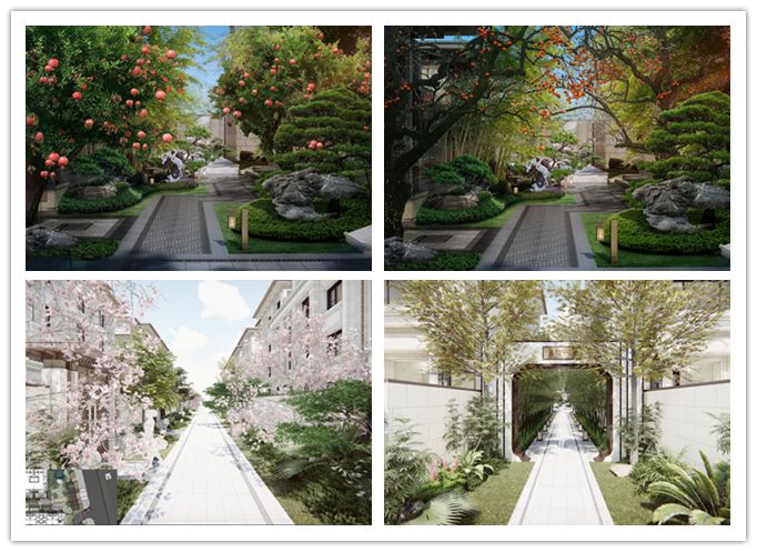 借鉴古代大院建筑结构,具有古典中式园林内涵,运用中国传统的景观元素和工艺。序列严整,庭院深深。