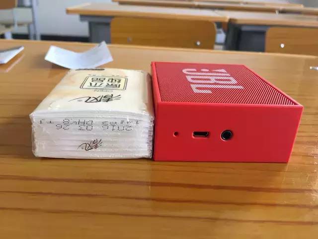 JBL GO的三围是高*宽*深:68.3*82.7*30.8(mm)大小可以参考清风的小包纸巾,JBL GO在做工方面也是可圈可点的,它外面采用了磨砂材质,摸上去手感很好,也有一定的防滑效果,音箱正上方是五个按键,从左到右分别是开关,蓝牙,音量减,音量加,和接听按键。左侧是挂绳孔,右侧从上到下是3.5mm耳机插孔,microUSB充电口以及麦克风。