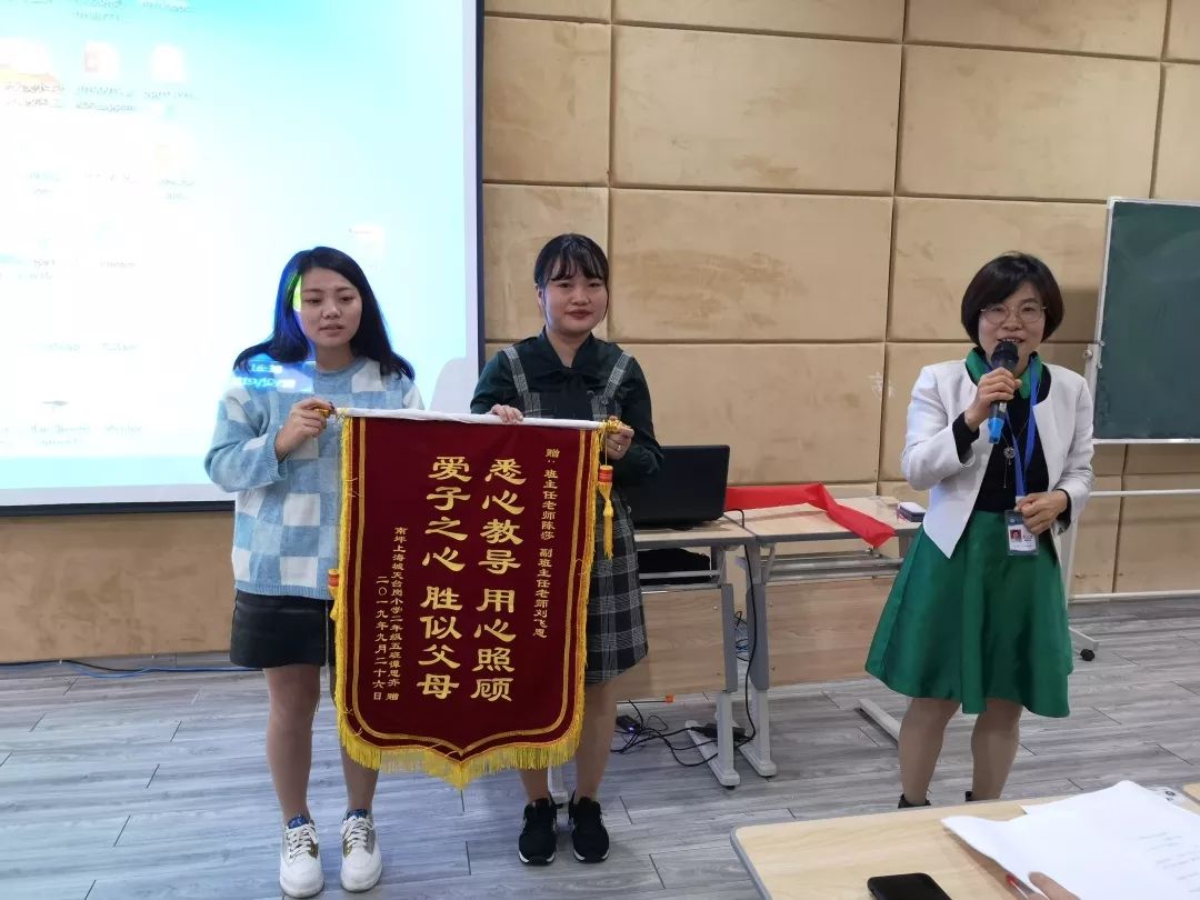 在上海城校区教师大会上,陈曼霞主任向全体老师朗读了感谢信,黄小燕校长向陈莎、刘飞思两位老师颁发了一面家长送来的感谢锦旗,号召全体老师向她们学习。黄校长说:“祖国有许许多多的榜样人物为国奉献,虽然我们没有做轰轰烈烈的大事,但是像陈莎、刘飞思这样的老师就是我们身边的榜样。在平凡的教师岗位上,潜心教书育人,用心关爱学生,坚持奉献自己,这便是一件不平凡的事,这便是教师的模范,教师的榜样。向榜样致敬”