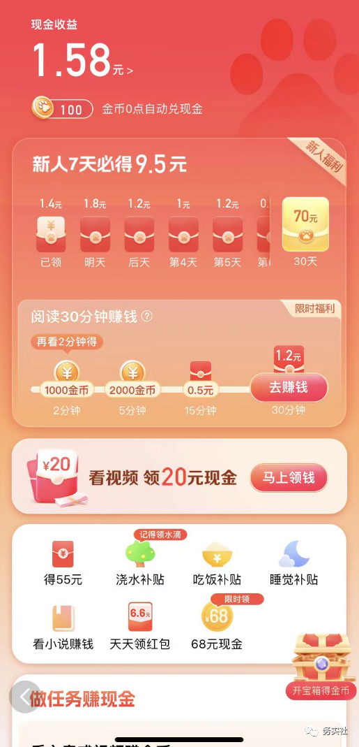 原理就是我们通过百度极速版在里面刷视频,刷小说就会得到金币,金币可以兑换现金提现。