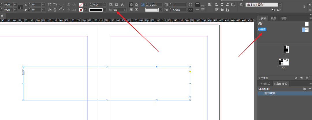在「主页」新建一个文本框,大小随意,但是一定要跨页,切换到「选择工具」,把「不透明度」调整到 0 就可以了。如果有多个「主页」则每个都需要设置。如果多个「主页」都基于一个「主页」,只需要把基本的「主页」设置下就可以了。