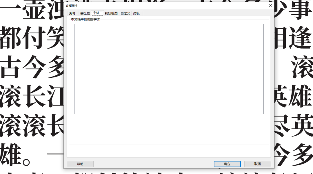 瞧,用Acrobat 打开之后 Ctrl+D 打开文档属性,字体选项卡中是空的,证明我们转曲成功啦。