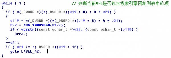 函数sub_17D11B00()内部根据上面获取到的URL判断是否是搜索引擎: