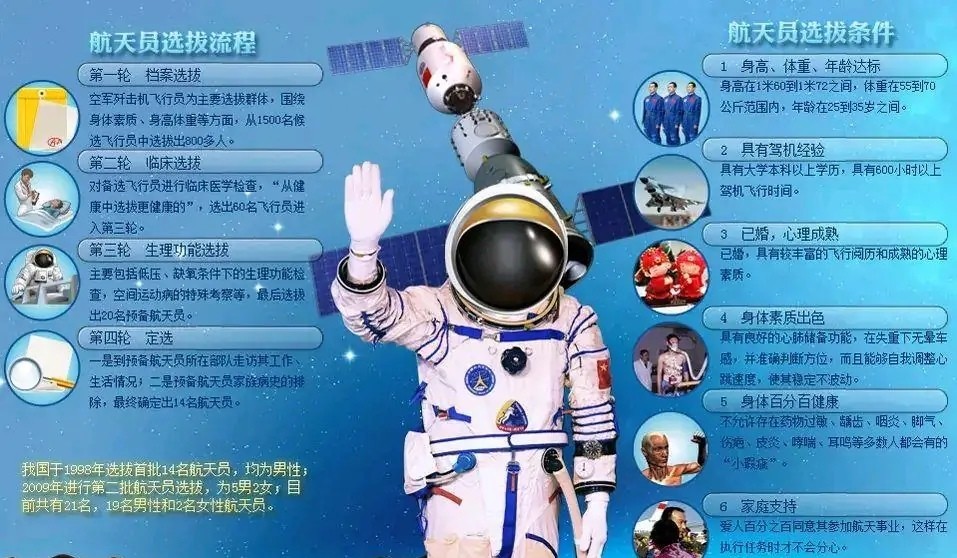 当然,在选拔航天员上,中国还是比较偏向选择已婚已育的女性,因为生育过的女航天员在身体及心理素质方面都更加成熟。除此之外,因为在太空中存在各种宇宙射线和辐射,目前的航天服并不能完全抵挡太空射线和辐射,虽然基因变异的概率比较小,但是为了以防万一,选择已婚已育的女性可能更好。