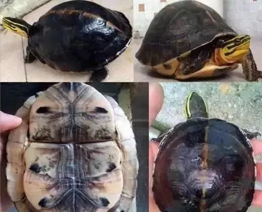 雄龟背甲长而稍扁,尾较粗长;雌龟背甲厚,尾较短。