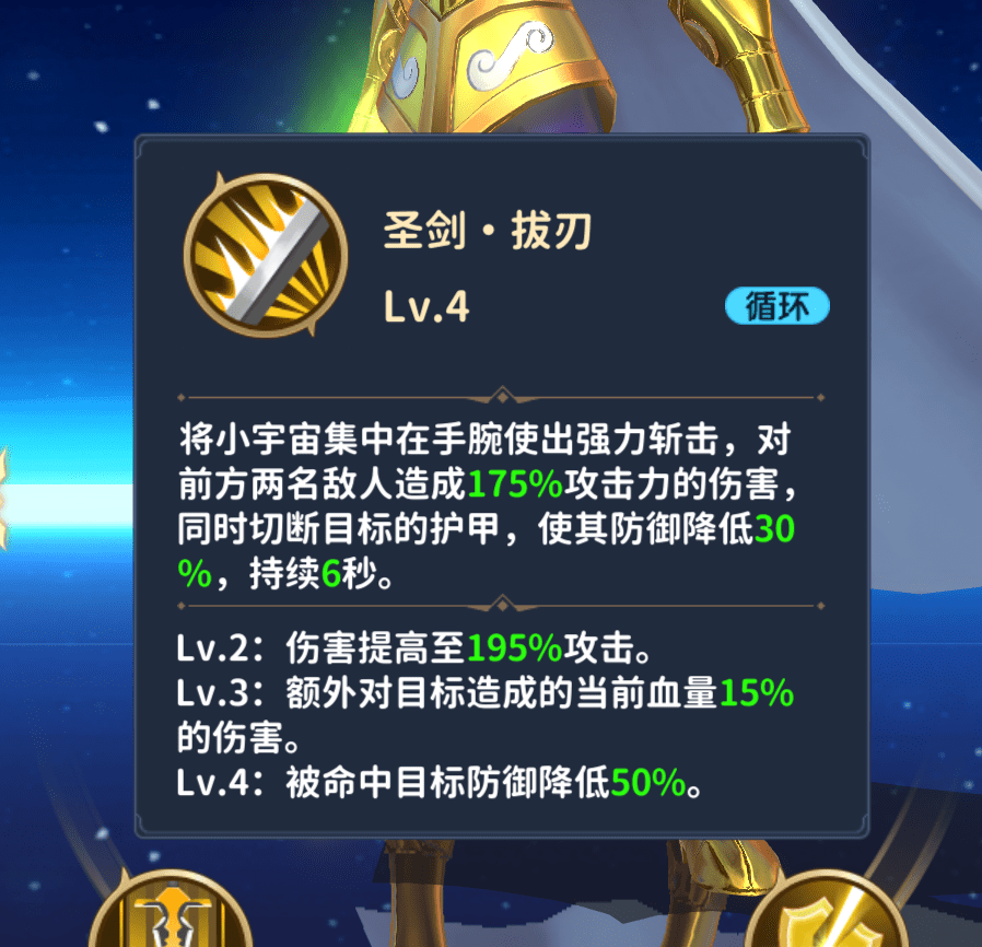 艾尔熙德单枪匹马进入梦界后,以圣剑秒杀对手假象者·幻塔索斯,并临阵创出圣剑+血之阵,力斩幻梦·伊克罗斯,面对威力更胜之前的四神合一神,艾尔熙德将圣剑发挥到极致境界,瞬间劈开四神灵魂,以人之力斩杀神明,十二黄金圣斗士中,能做到这一点的仅有艾尔熙德。