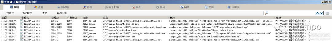 当流星加速器被下载器静默推广安装之后,便会在安装目录释放恶意代{过}{滤}理模块LocalNetwork.exe与后门模块SecurityGuard.exe。释放完成后,LXInstall.exe将创建C:Program FilesMicrosoft App文件夹并将LocalNetwork.exe移动到其中,随后启动LocalNetworkFlowService服务。同时LXInstall.exe会将SecurityGuard.exe移动到C:Windows目录下并启动执行。