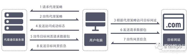 当得到代{过}{滤}理通信服务器地址之后,LocalNetwork.exe便会与之连接,获取所需的代{过}{滤}理策略。之后,LocalNetwork.exe根据下放的代{过}{滤}理策略访问目标网页,若访问成功,则返回目标网页相关信息。详细的通信流程,如下图所示: