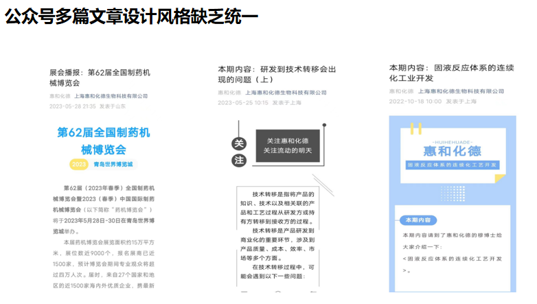 以上海惠和化德生物科技有限公司为例,官方网站和企业微信公众号在品牌统一方面极度缺乏。