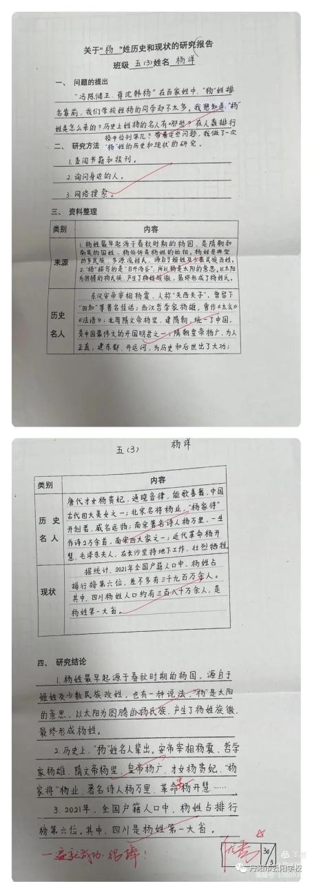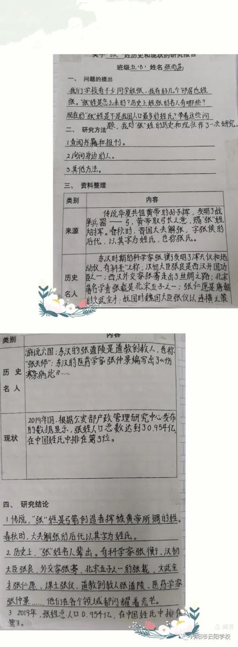 研究自己的姓氏,用调查报告的形式呈现,孩子们有了满满的成就感!