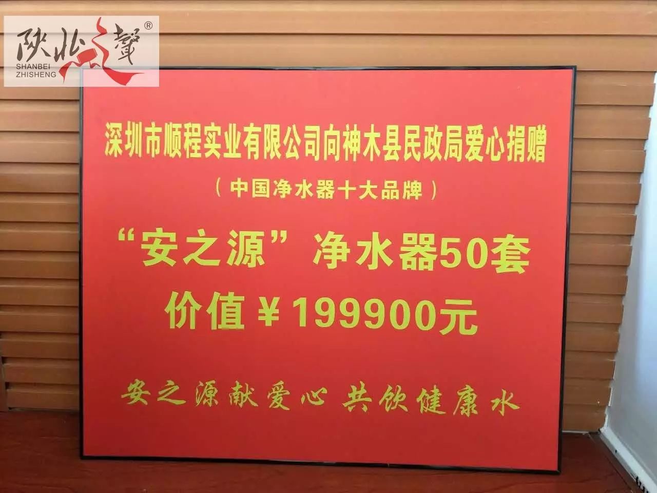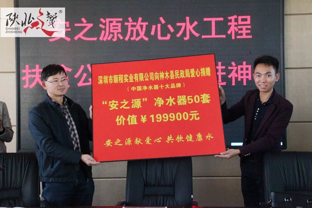 10月14日上午,深圳市顺程实业有限公司决定于神木镇人民路社区三楼会议室举办“安之源”牌净水器公益慈善捐赠仪式。