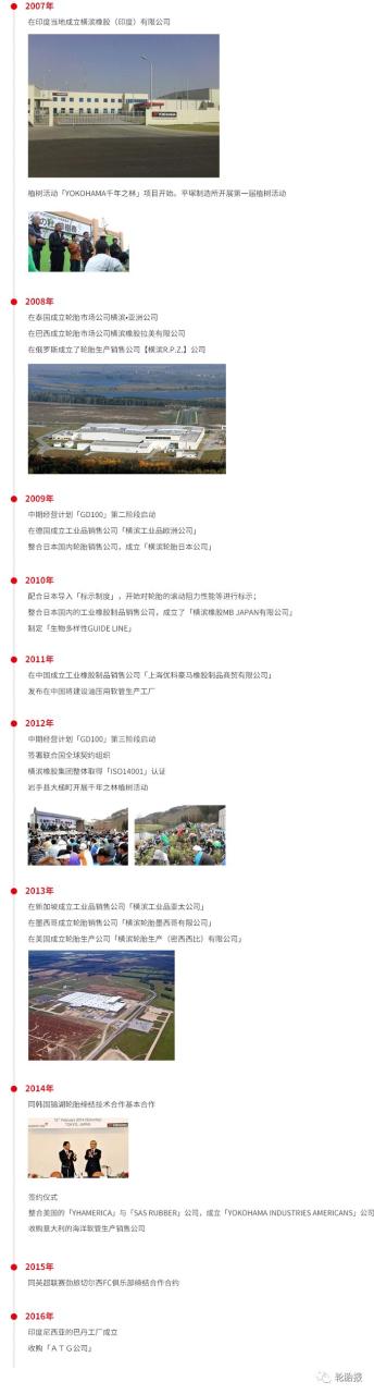 2005年在中国成立投资公司「优科豪马橡胶有限公司」日本横滨轮胎,全面负责横滨橡胶在中国的业务发展及对所投资企业进行管理