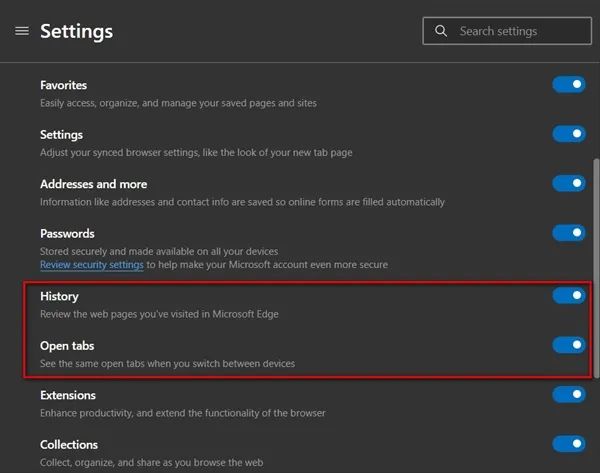 开启后,无论你在哪台设备上登录微软账号,都可以看到相同的历史记录和正在打开的标签页。