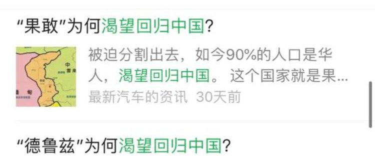 记者以“渴望回归中国”为关键词,4月15日在微信搜索相关文章发现,有公众号名为“最新汽车的资讯”发布近30篇“某某国为何渴望回归中国”“某国为何从中国独立出去”为题的文章。该公众号注册公司为陕西省西安市曲江新区蜡笔网络工作室,于2019年1月7日注册公众账号“最新汽车的资讯”。