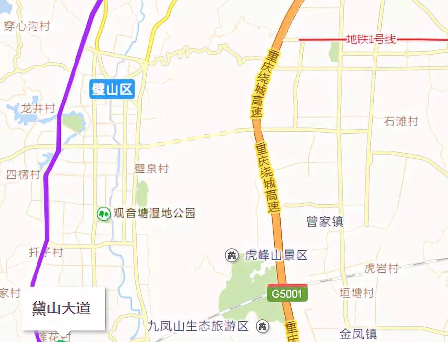 北起渝遂高速公路璧山段,南至青杠街道,全长25.825公里,百米宽双向八车道,它是当之无愧的“重庆第一城市大道”;