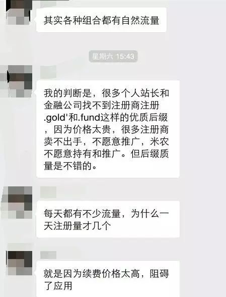 批量续费要筛选一些精品词进行续费,一要考虑一些短的字母或数字进行续费,另一方面就要斟酌哪些前缀比较契合于后缀的含义,例如.gold tao.gold(淘金子),touzi.gold(投资黄金,适用于黄金期货),有一定的含义,且符合于终端的需求,就要把它视为重点保护对象,续费,剩下的就可以适当的舍弃了,如果一味的在群里,论坛去做一些夸张的广告去忽悠,找接盘侠,不仅成功率较低,而且浪费时间。