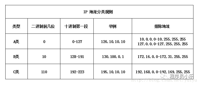那么转化为十进制(四段)的话,我们就能以第一段中的十进制数来区分 IP 地址到底是哪类地址了。