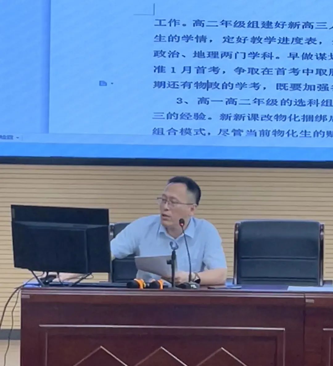 陈相轶副校长围绕2023届高考成绩、高一高二的期末成绩做质量分析:各年级的成绩都较之前有了非常巨大的进步。同时,陈校长也提出有些学科还需努力提升,作为学校上升的重点。