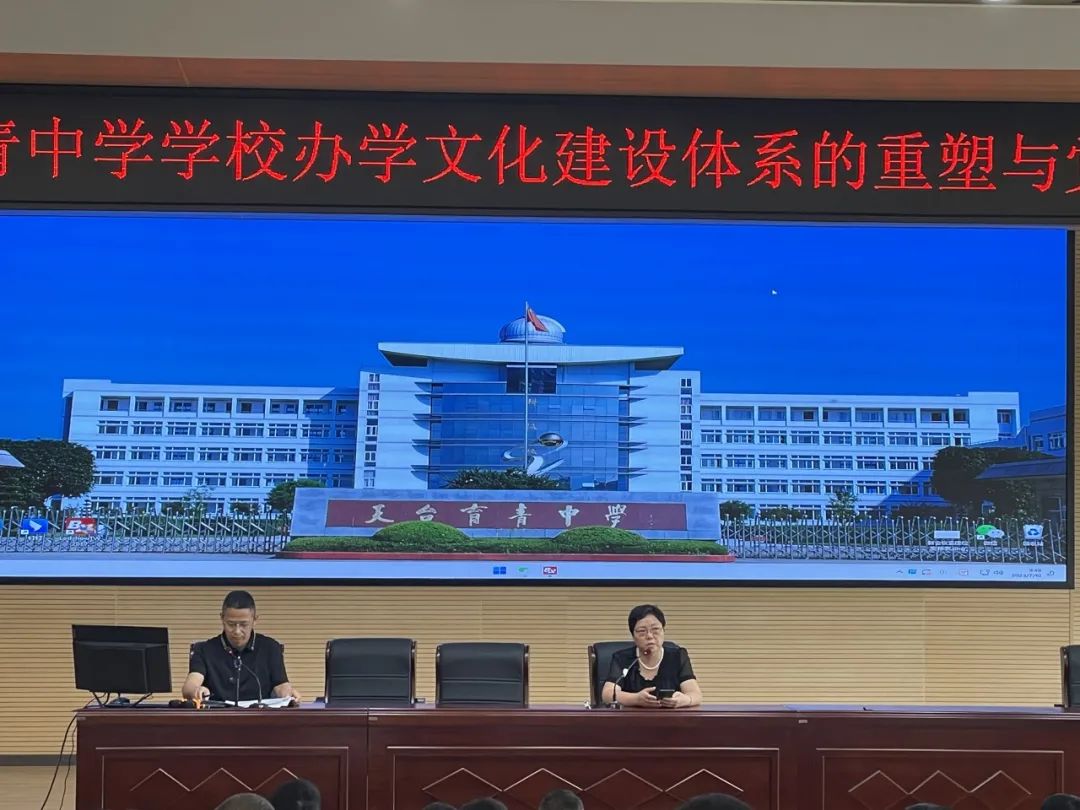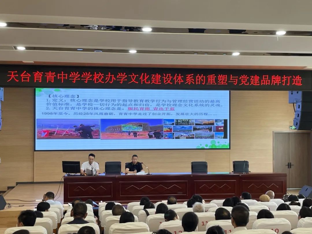 党总支副书记葛承志围绕一训三风、办学目标、办学理念等方面解读校园文化及其精神内核:天台育青中学的核心理念是“振民育德 青出于蓝”,以“担当、进取”为学校精神,让学生有更深的成长体验,让教师有更多的成功机会,让学校有更大的发展空间,以“全人成才”为办学目标,进行全方位育人,全面育人,育全部人。