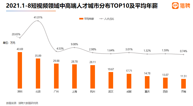 从去向看,流出深圳的人才中12.4%流向广州,流出广州的人才中16.9%流向深圳,深圳和广州互为人才外流目标城市的第1位,深圳流向广州和广州流向深圳的人才流出在全国流动人才总量中占比分别为0.37%、0.47%,人才从广州净流向深圳。2021年流入、流出深圳的行业人才中IT/通信/电子/互联网占比达30.7%、29.0%,均远高于其他9个城市,深圳IT/通信/电子/互联网行业人才流动频繁。