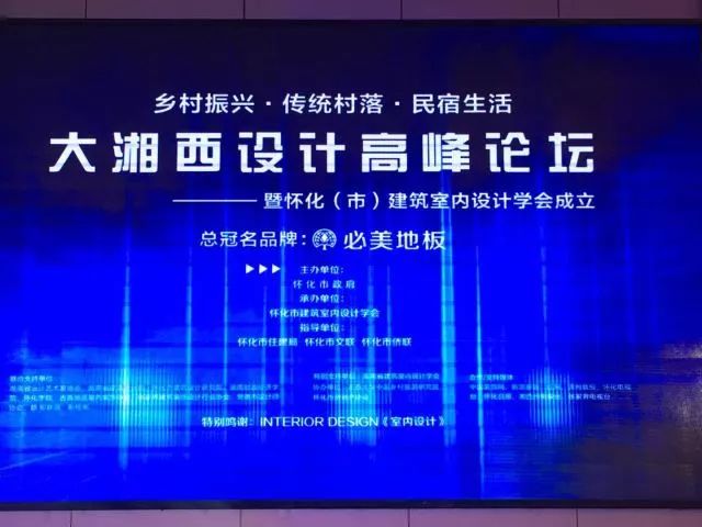 2018年1月9日,由怀化市政府主办、怀化市建筑室内设计学会承办、必美地板全程总冠名的大湘西设计高峰论坛暨怀化市建筑室内设计学会成立典礼在湖南怀化半岛洲际酒店举行。出席本次设计论坛的嘉宾有怀化市政府副秘书长谌启业、怀化市工商联副会长肖旭亮、湖南省建筑室内设计学会轮值会长王湘苏、必美国际集团销售总经理陈凯君女士以及200多位来自各地的设计界大师和精英。