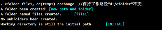 efolder temp, nochange //等同于 efolder d:/efolder/temp, nochange