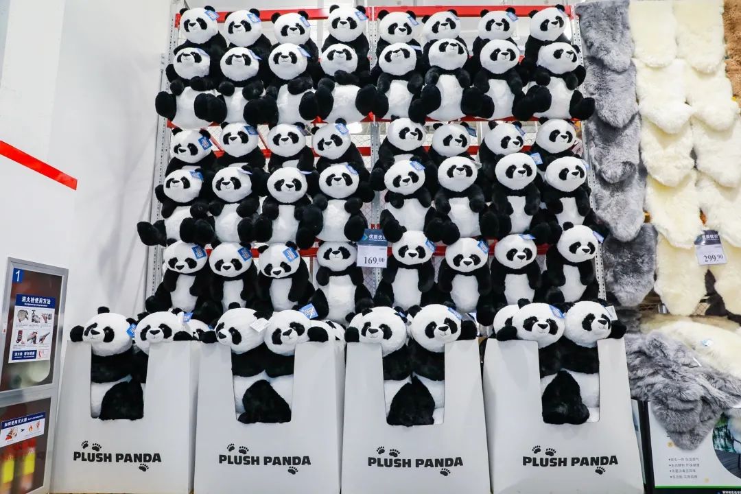 一进山姆,咱家的小朋友就被这面熊猫墙给吸引住了,抱着娃娃不肯松手,摸了一下真的巨舒服,连我这个当妈的都心动了