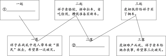 【答案】(1)①样子攒够钱准备买车,钱却被孙侦探敲诈;祥子再次攒钱终于又买了车,不幸又遇虎妞难产,样子不得不卖车葬妻。