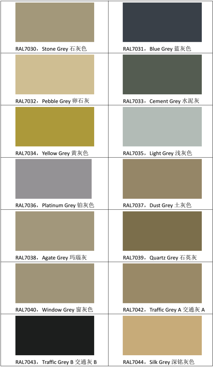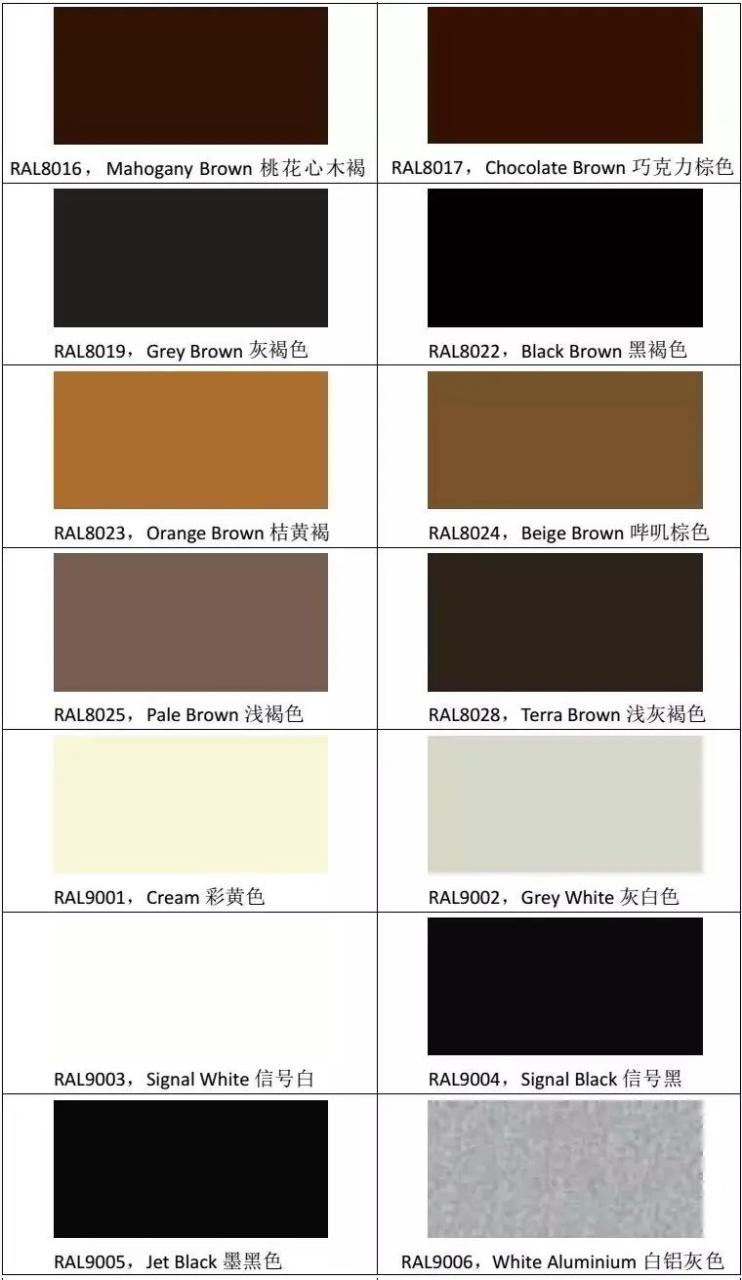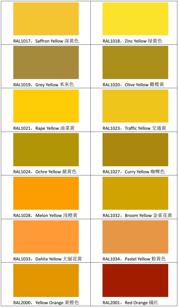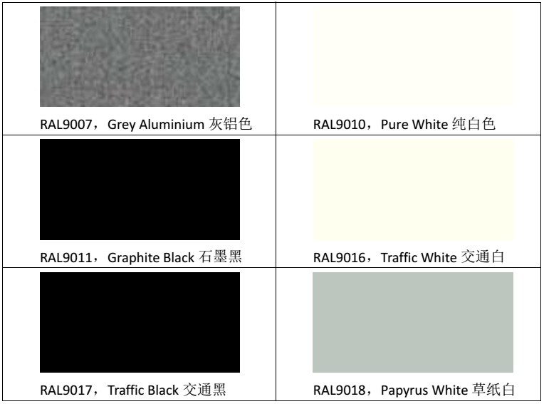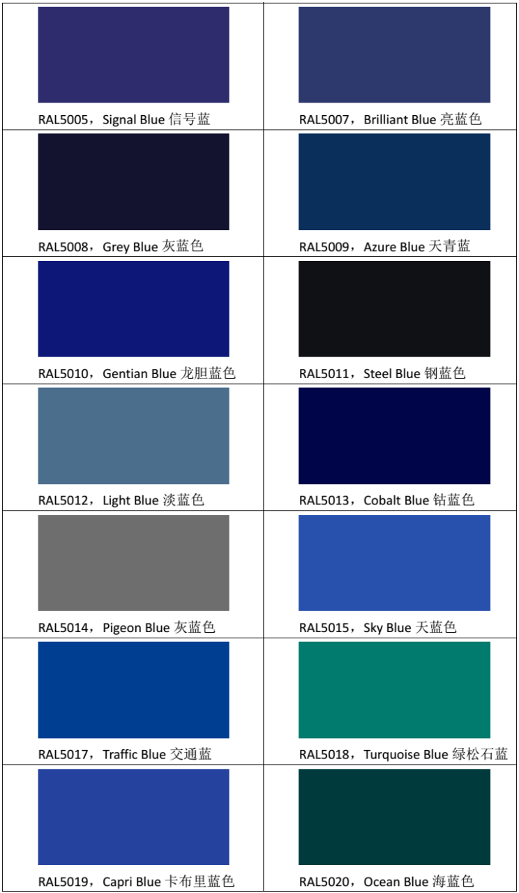 在实际使用时,可能经常使用的只是其中的几种,使用的种类繁多反而不便于管理,例如RAL9016 交通白、RAL9017 交通黑、RAL5017 交通蓝等。使用时每个公司制定自己的颜色标准即可统一管理。在设计时统一所需要的颜色国标色卡对照表,既保证了设备颜色的统一性,又保证了颜色的美观。