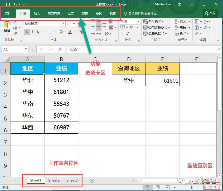 F6:在单元格 –› 工作表名称区 –›缩放级别 –›选项卡区之间来回切换。