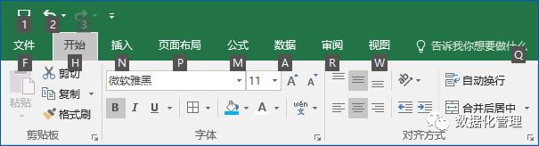 在Excel中按下F10后,功能区选项卡下方会出现英文字母,此时按下对应的字母,效果相当于鼠标左键点击一下这个功能。这个快捷键也用得比较少一些。(键盘上的Alt也有这个效果)