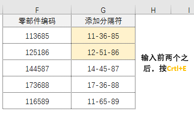 手工输入“60-36-65”,随后再在下一行输入类似的数据,按Ctrl+E即可快速填充所有变得结果。