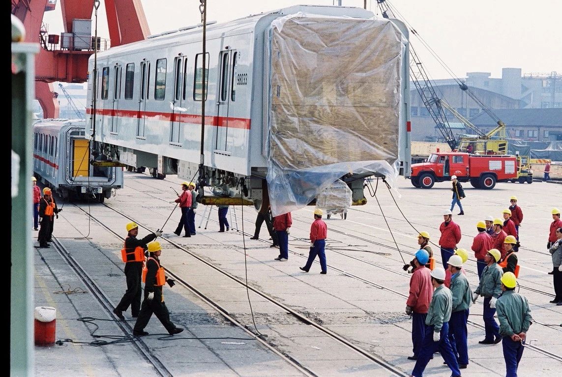 1992年10月,第一批从德国进口的地铁1号线车厢陆续抵达张华浜码头。
