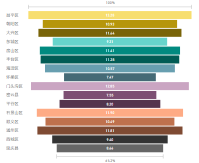 此外,北京职住分离的普遍情况,也进一步造成了北京居民通勤距离变长。北京市统计局曾有一组数据显示:北京市有约68%的常住人口分布在四环以外,这些常住人口一般在工作日的9:00至18:00,向四环内聚集,而在23:00至次日7:00的非工作时间,向四环外流出,职住分离情况非常明显。