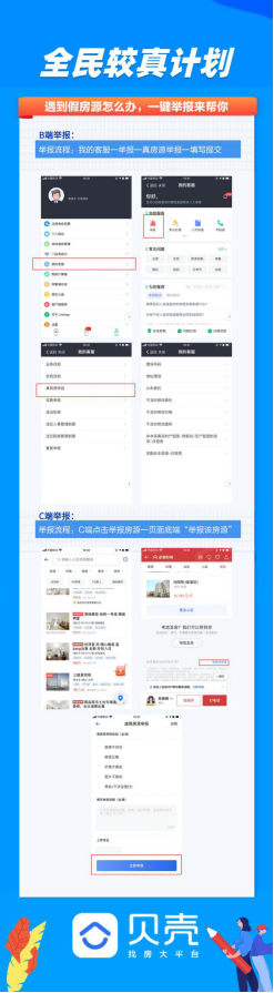 活动2:假一赔百!贝壳积极响应真房源承诺,全网房源假一赔百元(参与步骤:下载/进入贝壳找房APP——C端用户点击“举报该房源”,被举报房源审核时间24小时)。