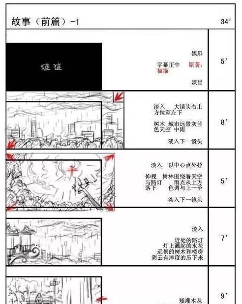 还是在来说说关于分镜头手绘的问题,其实绘画的程度只能决定你分镜头的美感,不能决定它的好坏,即便你画的是火柴棍小人,也没有问题,只要通过画面衔接技巧和景别让画面在你的脑中流淌起来就足够了。再加上最早促使我们创作的都是那一闪而过的灵感,分镜头能很好的帮我们将这些灵感保存,所以在创作初期搞一个简单的分镜对后期的拍摄帮助会非常大。