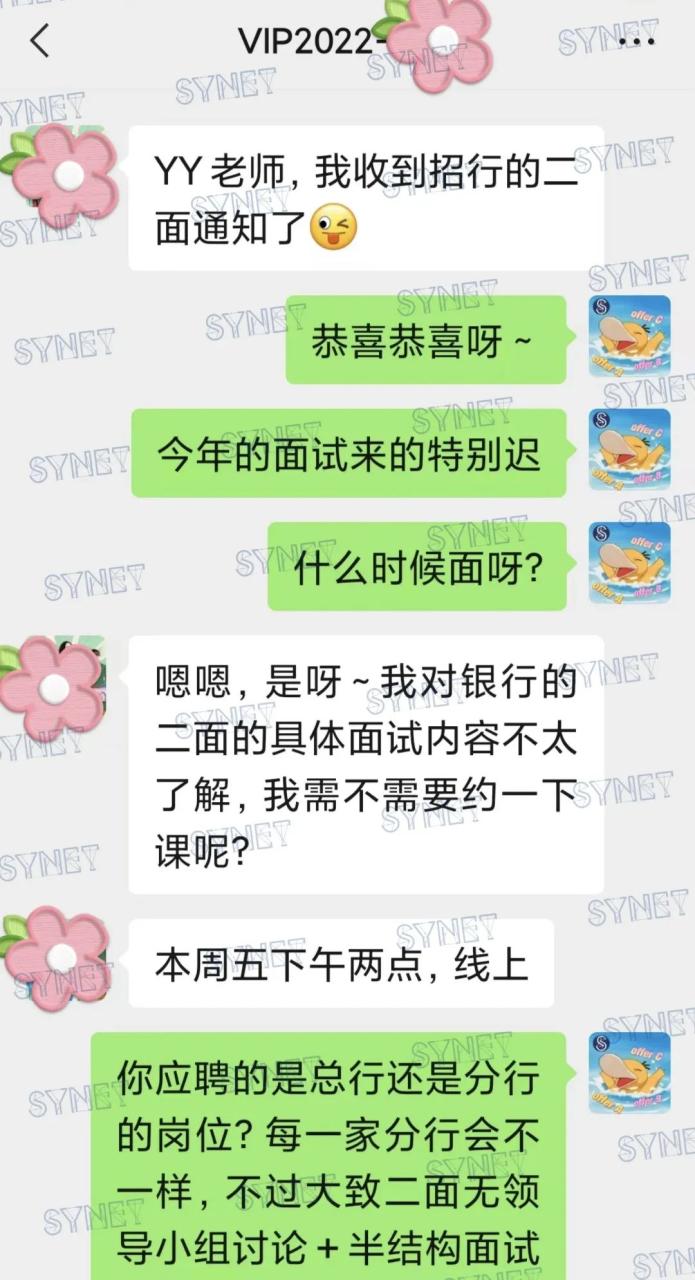 Synet VIP一对一求职计划招商银行待遇,来自快消、四大、互联网、金融、咨询、地产…多行业500强实名认证咨询师,Synet VIP求职计划会根据你的目标和现状为你个性化定制课程,在你整个求职过程提供1v1帮助,包括职业规划、行业了解、经历挖掘、简历指导、各类面试模拟等方面,系统性、全面性帮你提升求职竞争力!
