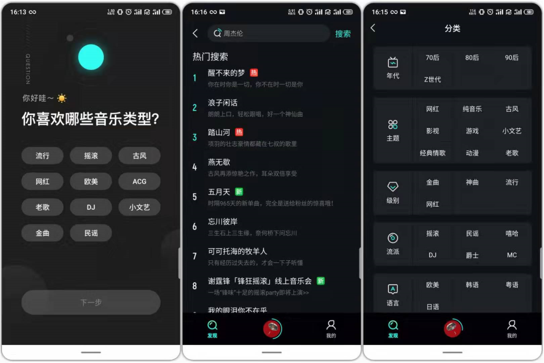 系统会根据你自己刚进软件选择的品味来为你推荐歌单